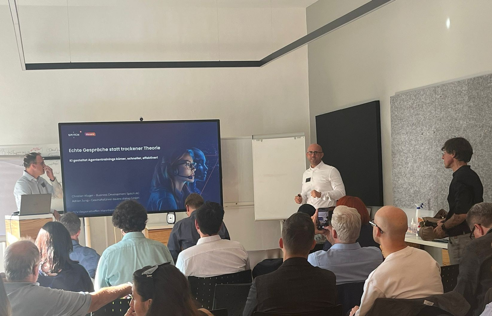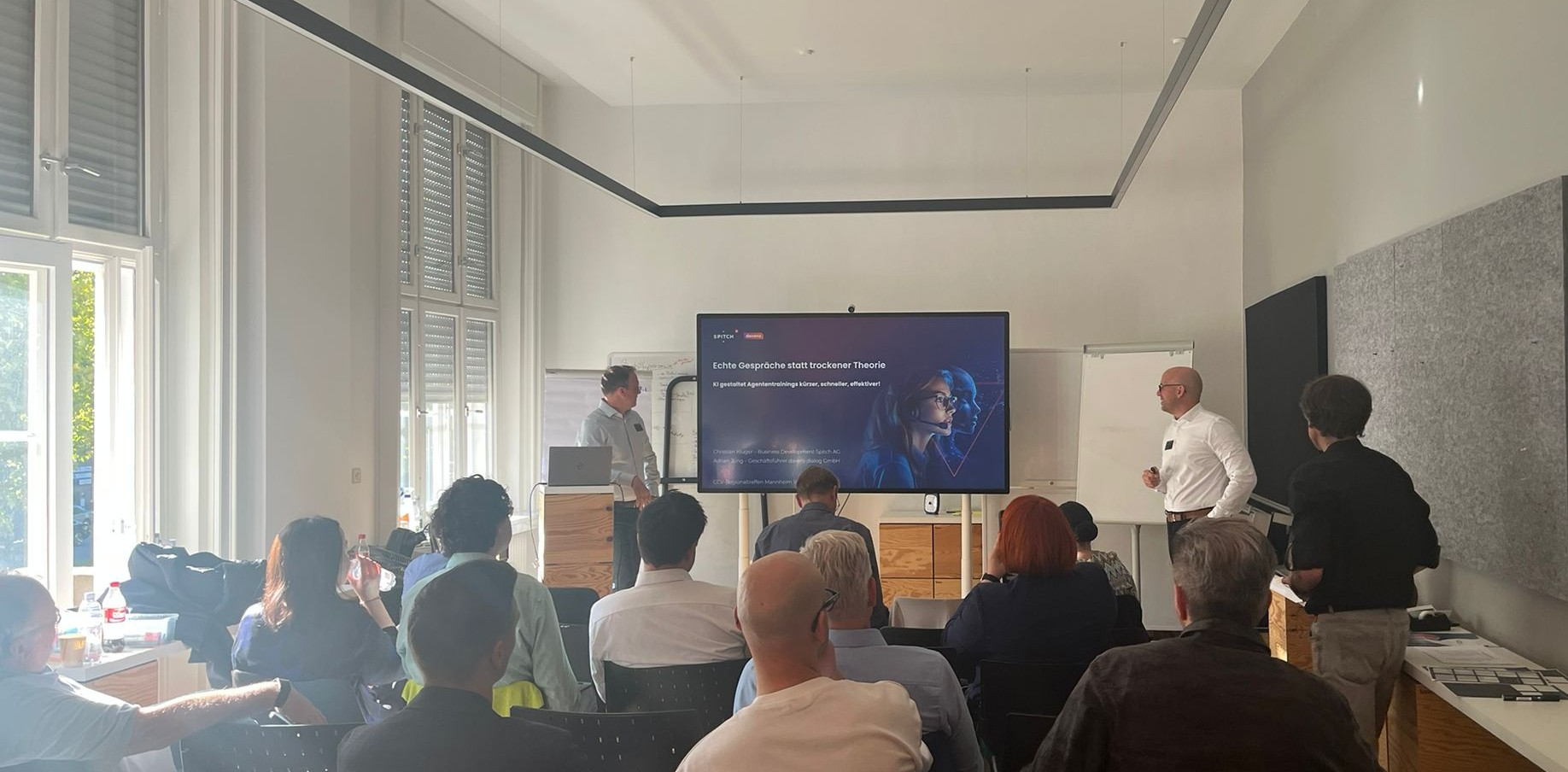 🔹 Christian Kluger (Spitch AG) und Adrian Jung (davero) zeigten eindrucksvoll, wie KI das Agententraining revolutioniert: schneller, gezielter, motivierender.