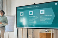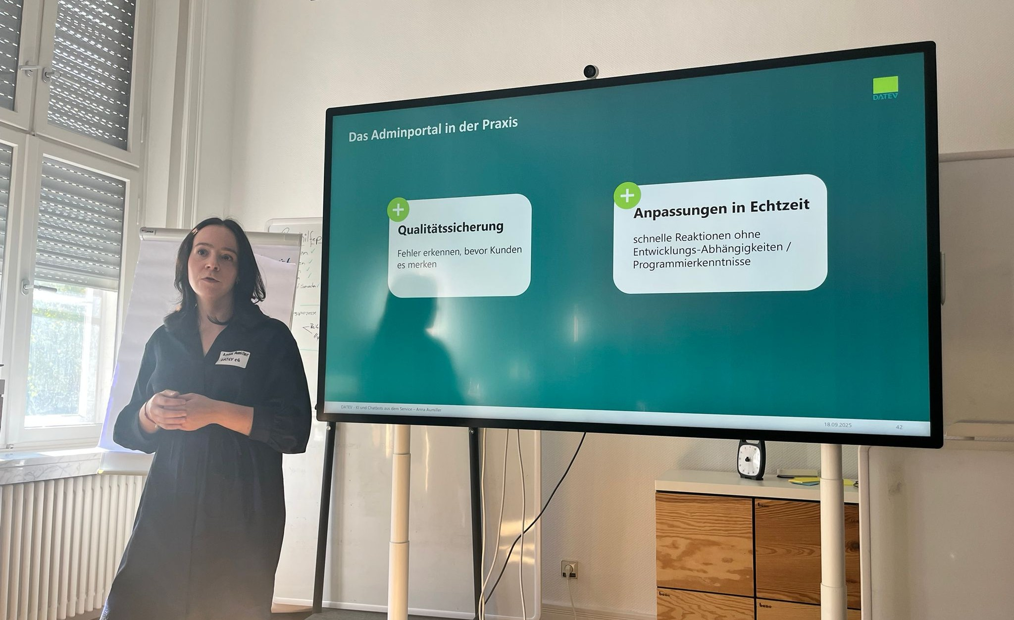 🔹 Leon Zimmer und Anna Aumiller (DATEV) stellten den DATEV Service-Assistenten vor – ein KI-Chatbot, der nicht nur Fragen beantwortet, sondern auch Vertrauen schafft.
