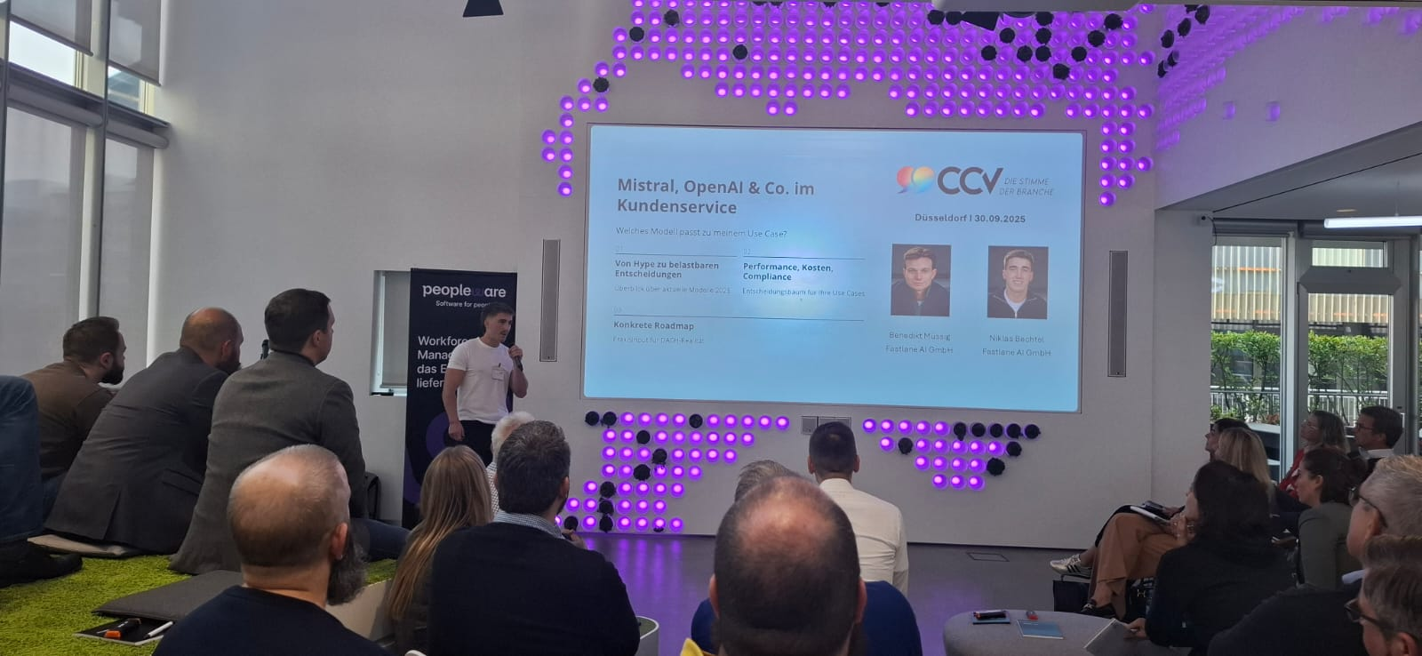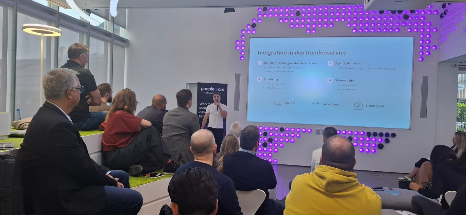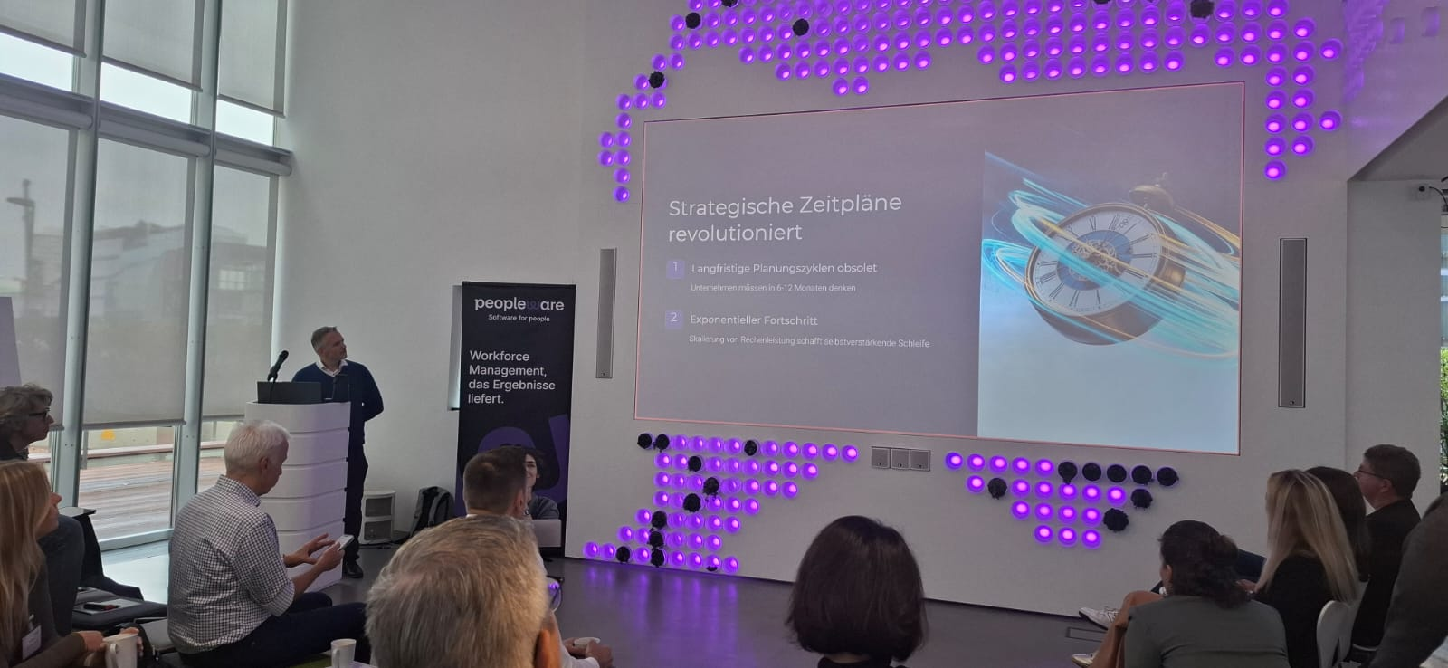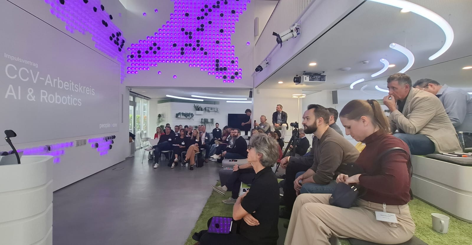 Wir starteten bei vollem Haus mit fast 60 anwesenden Teilnehmenden mit einem Get together mit Snacks und Softdrinks – sponsored by Peopleware!