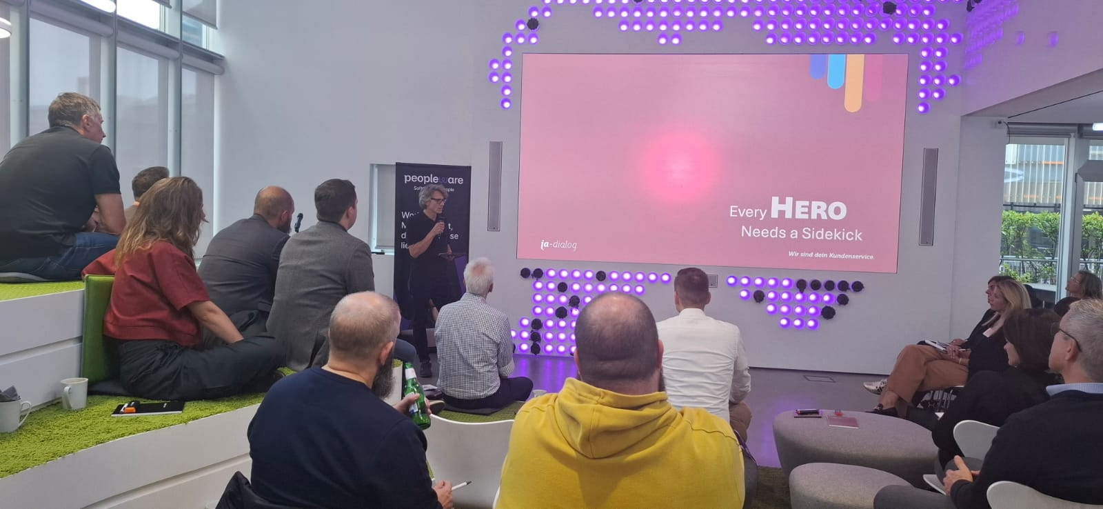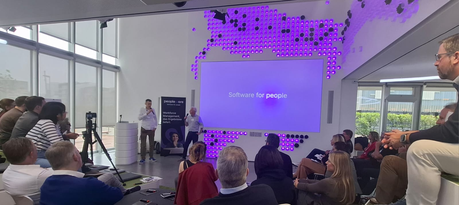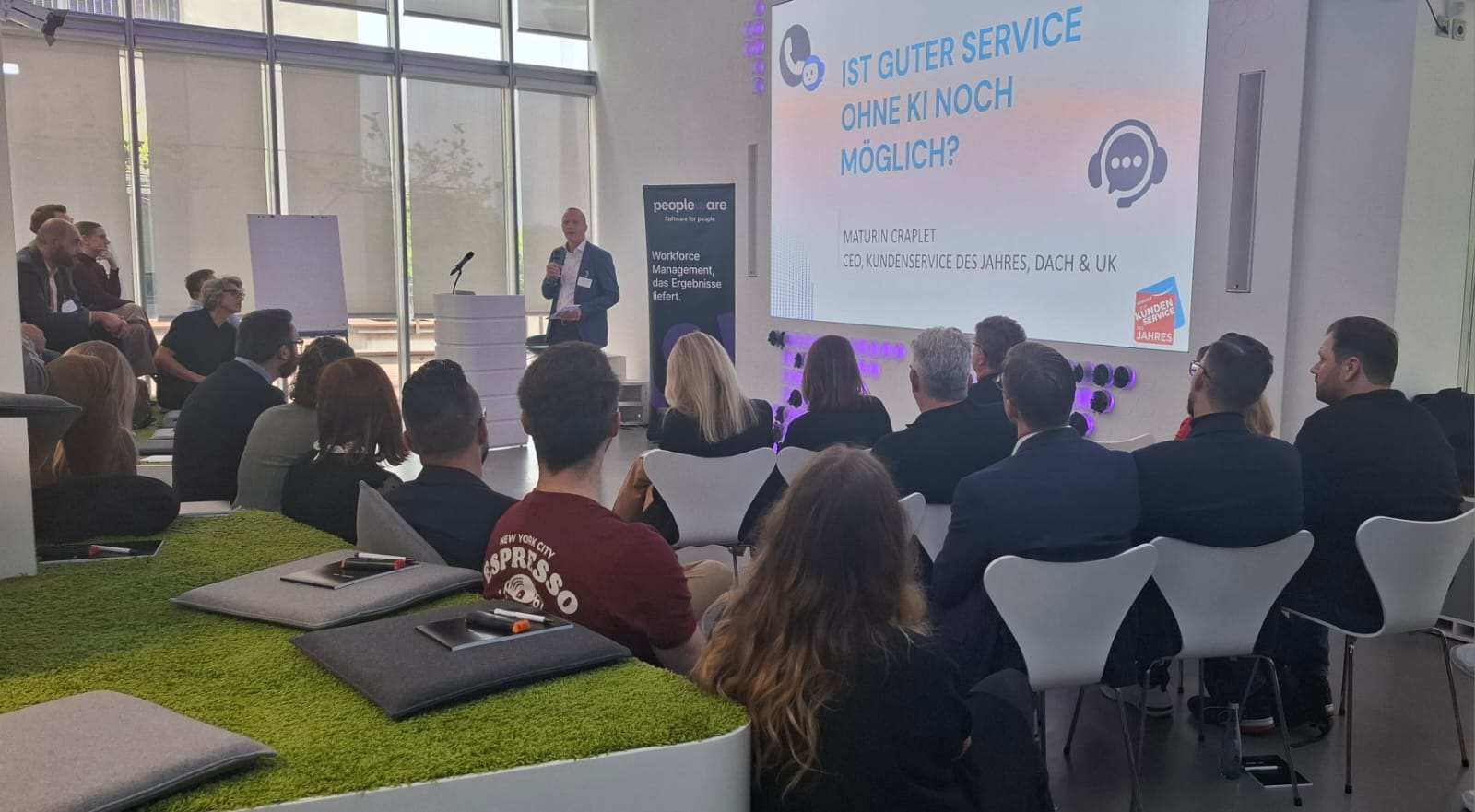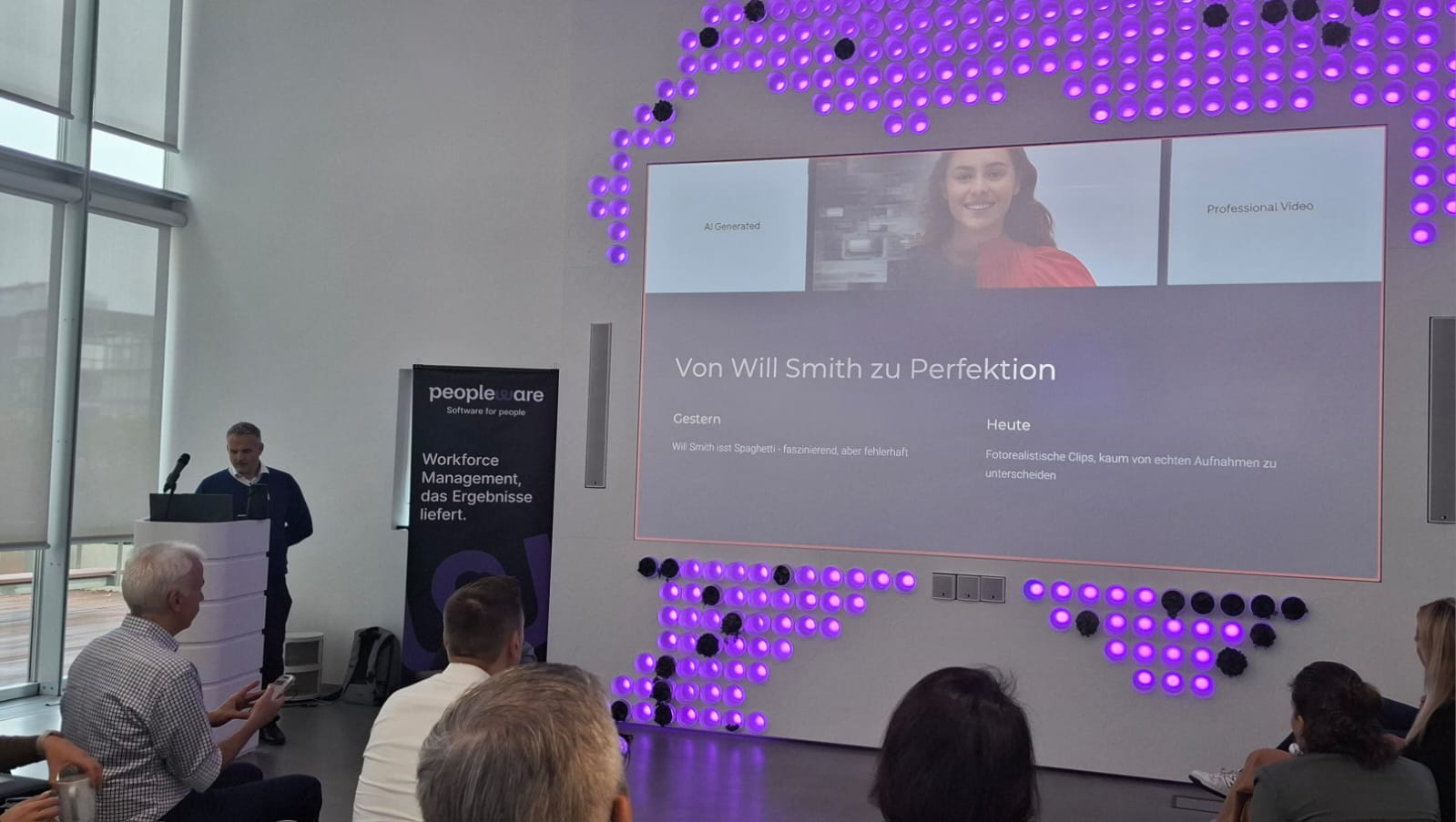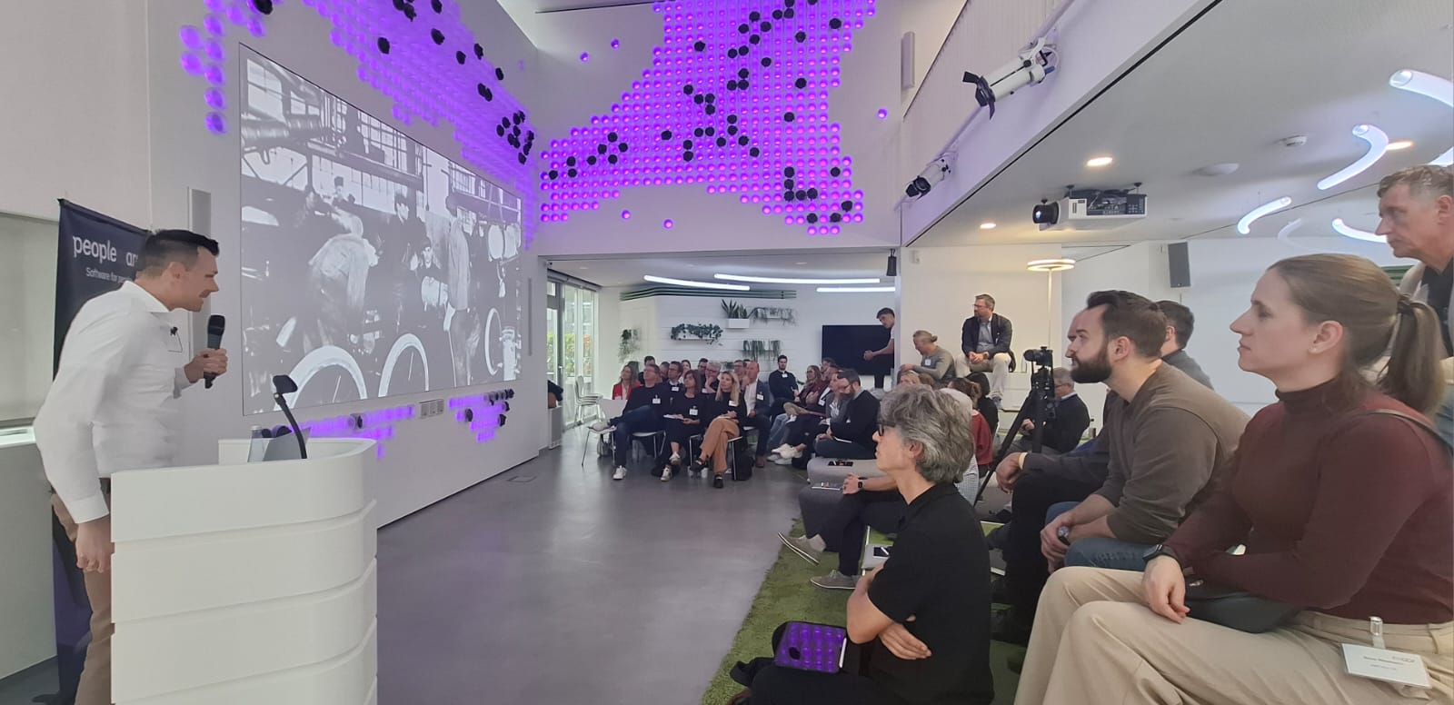 Wir starteten bei vollem Haus mit fast 60 anwesenden Teilnehmenden mit einem Get together mit Snacks und Softdrinks – sponsored by Peopleware!