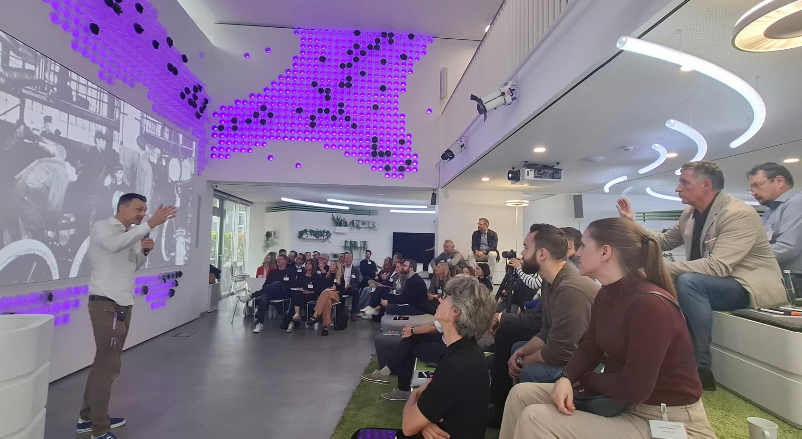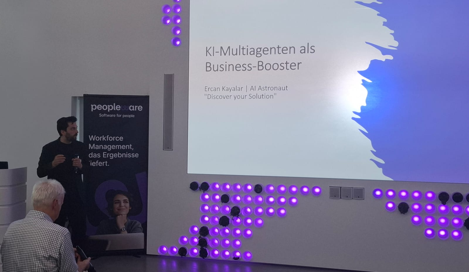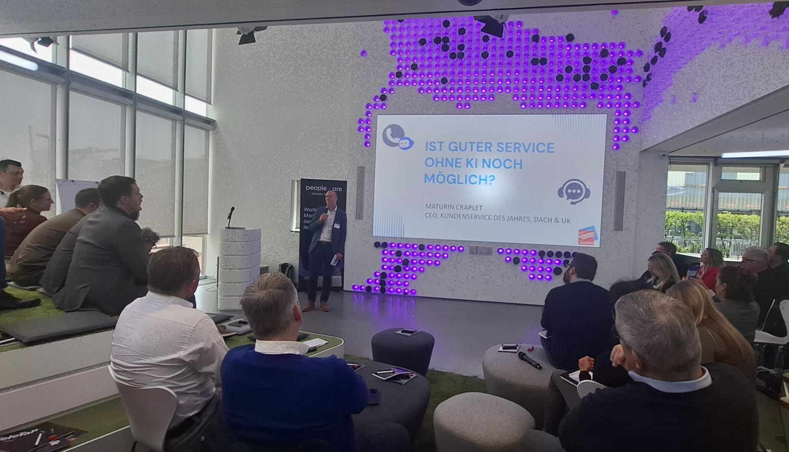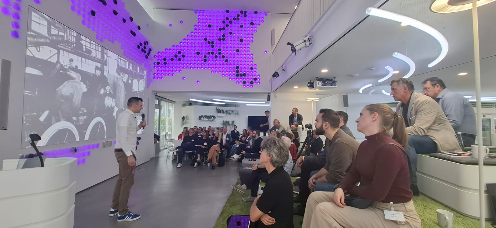 Wir starteten bei vollem Haus mit fast 60 anwesenden Teilnehmenden mit einem Get together mit Snacks und Softdrinks – sponsored by Peopleware!