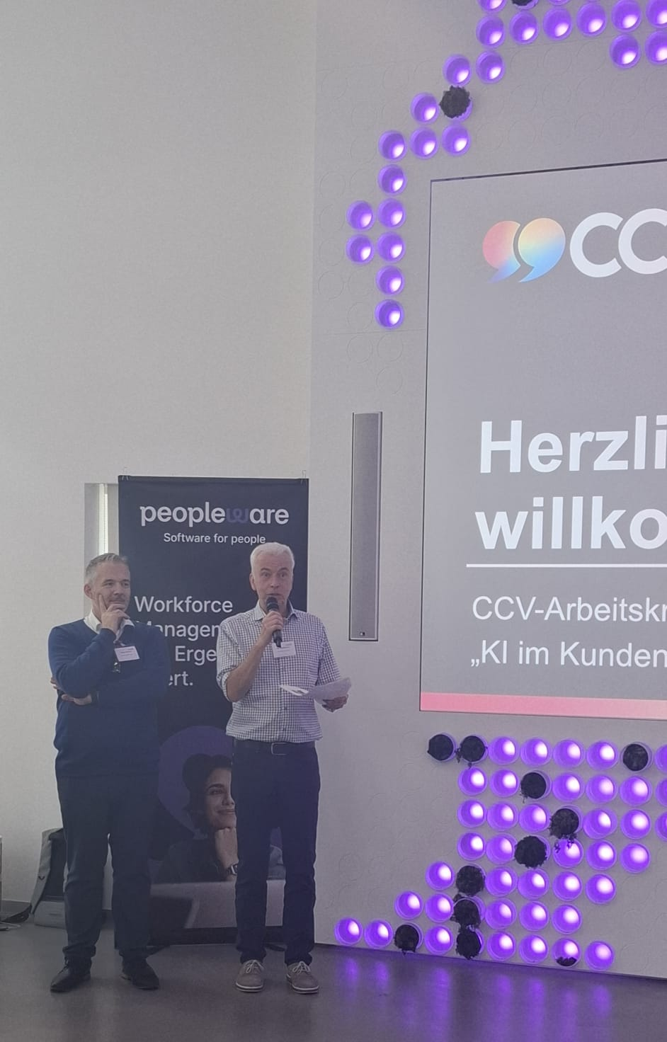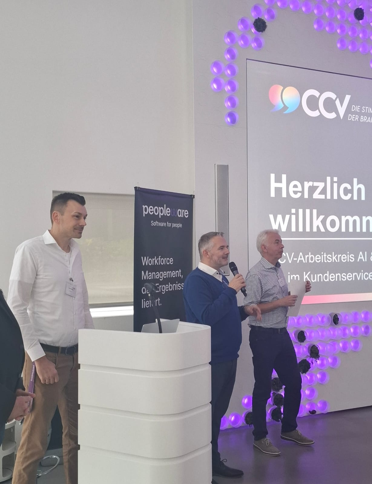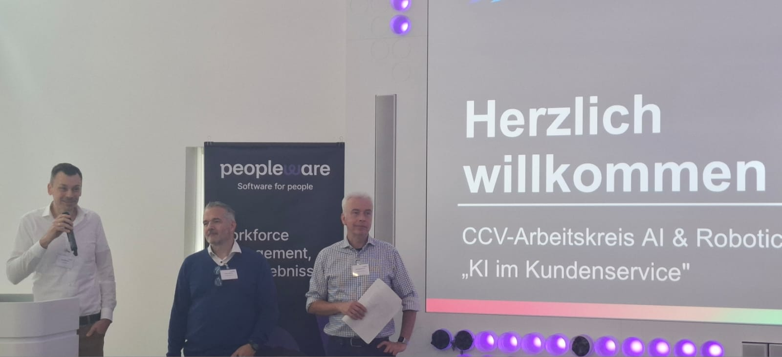 Die CCV-Arbeitskreisleiter AI & Robotics Rainer Wilmers, Ralf Mühlenhöver und Sascha Poggemann luden am 30. September unter dem Motto „KI im Kundenservice: Praxisnahe Einblicke, Erfolgsgeschichten, Lernen und (Er-)Arbeiten #2″ zum zweiten Präsenz-Event des Arbeitskreises nach Düsseldorf ein.